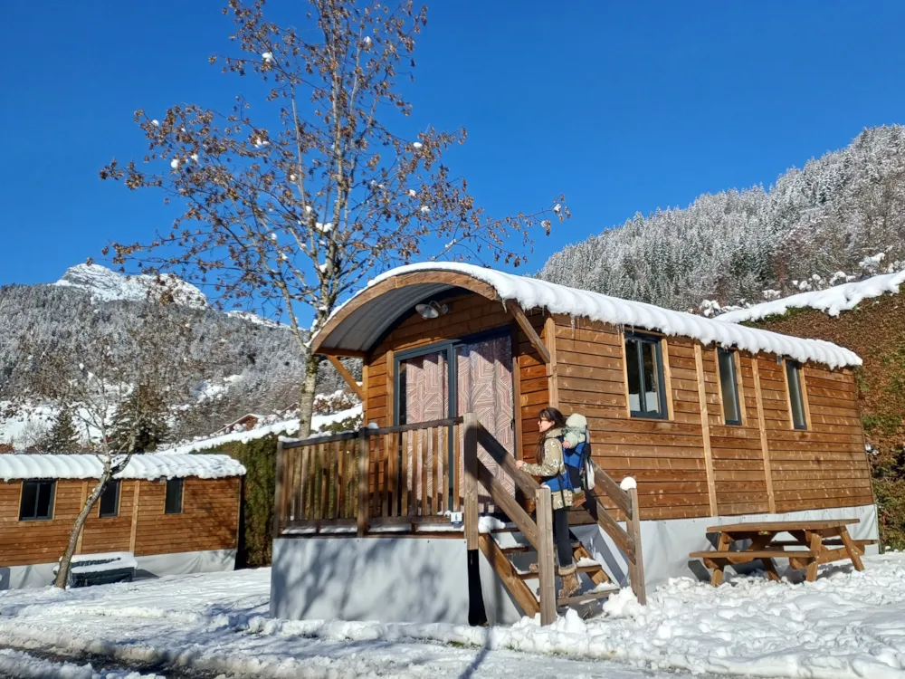 Emplacement super avec petit arbre pour l'ombre et vue sur les aravis.... Facilité d accès pour une grosse caravane sur cet emplacement